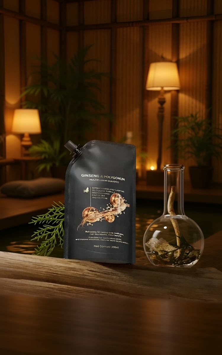 【ขจัดผมร่วง สร้างเส้นผมใหม่! 】แชมพูสมุนไพรเห็ดหลินจือดำและโชวู